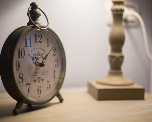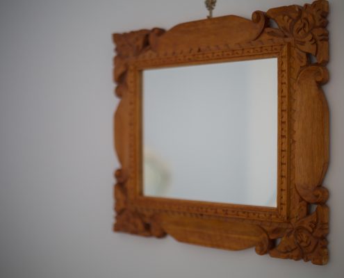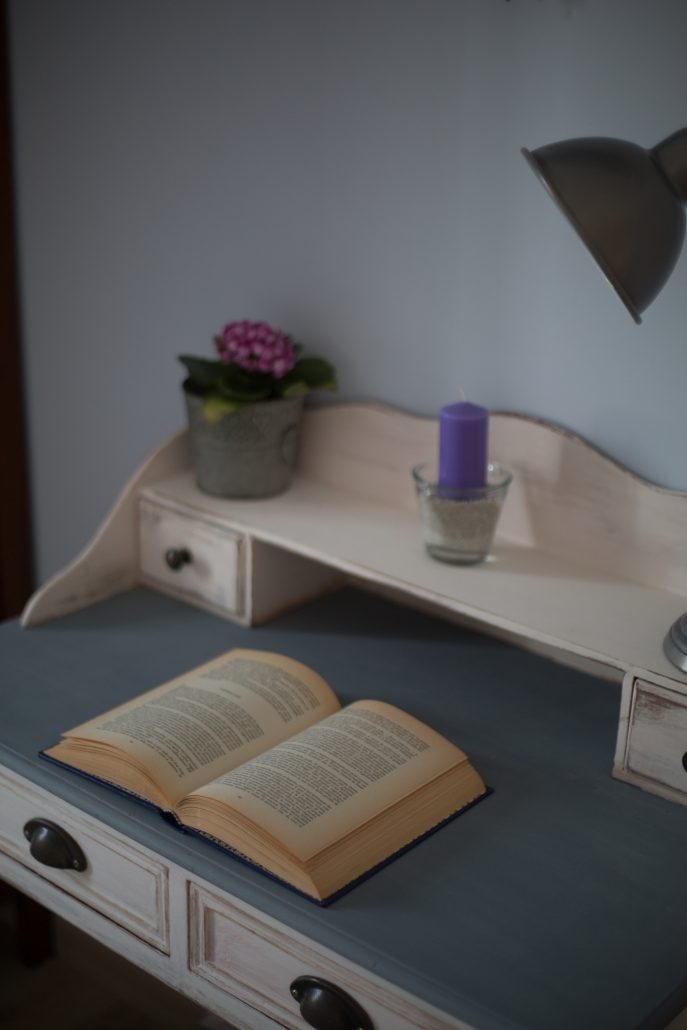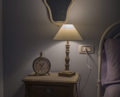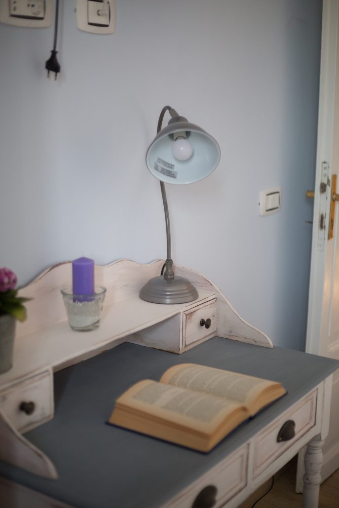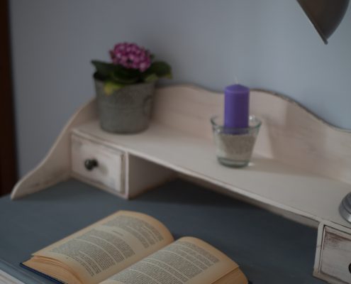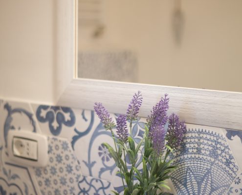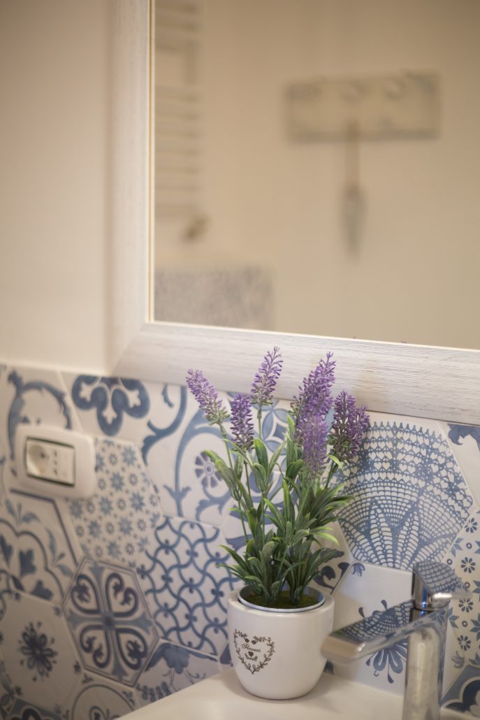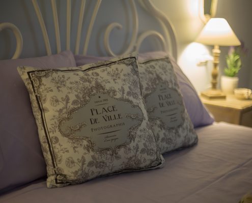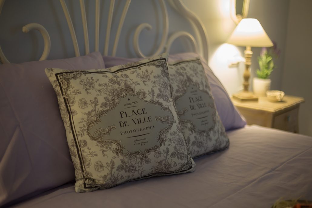 La camera pervinca è arredata in maniera sobria e rilassante.